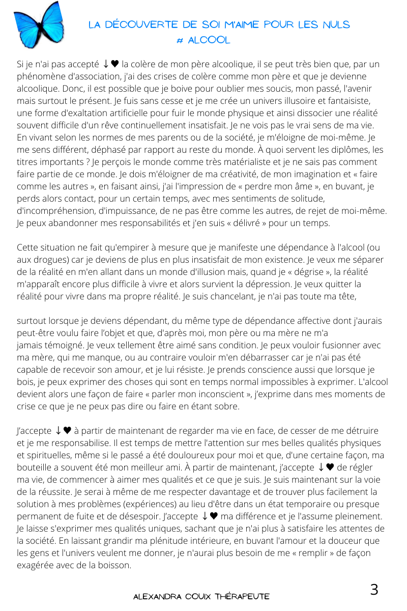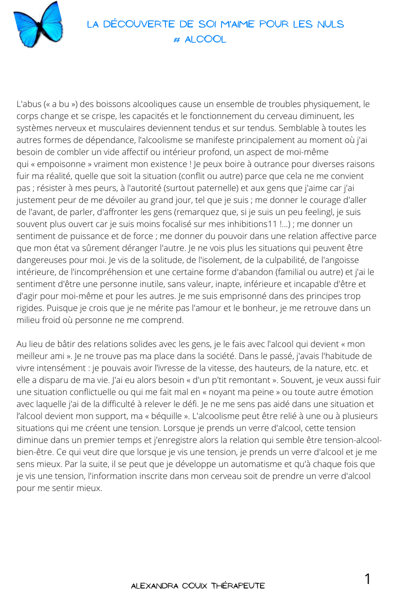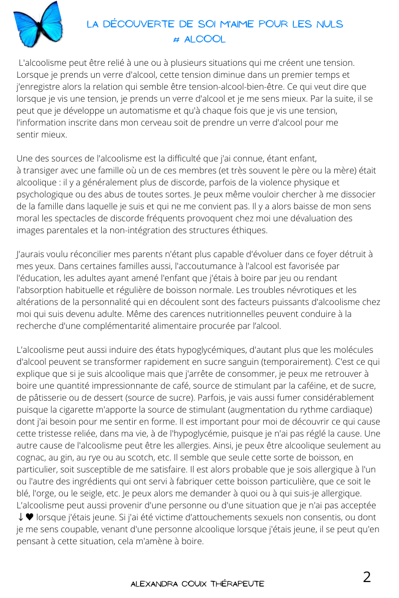 La Découverte de soi m’aime pour les nuls : Alcoolpar Alexandra Couix Thérapeute admindans Développement personnel,Mon corps m'alerte,Programme La Découverte de soi m'aimesur Publié le 8 février 20238 février 2023 Alcool 1 Alcool 2 Alcool 3 Alcool 3